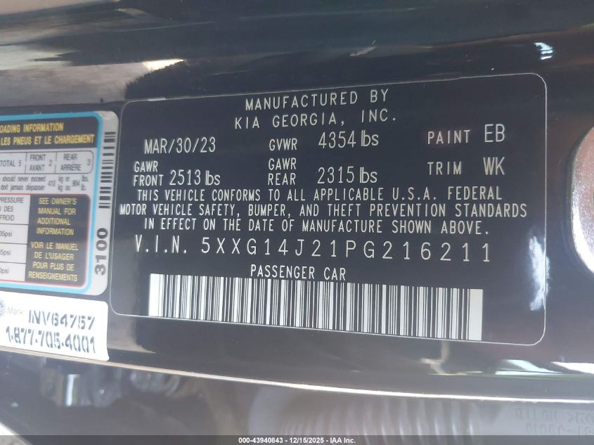2023 KIA K5 2023 року Бензин, 1.6, Передній привід, vin - 5XXG14J21PG216211 з США