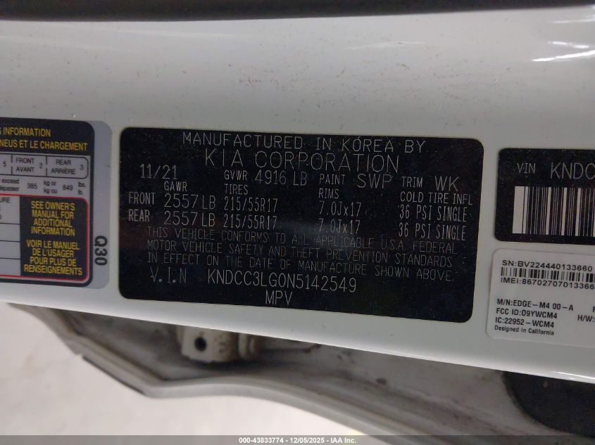 Колір БілийПривід Передній привідVIN KNDCC3LG0N5142549Стан Заводиться та їде (перевірено)Ушкодження Передня або задня AutoRIA