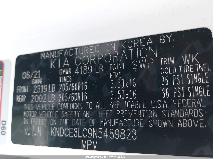 2022 KIA NIRO 2022 року Гібрид, 1.6, Передній привід, vin - KNDCE3LC9N5489823 з США