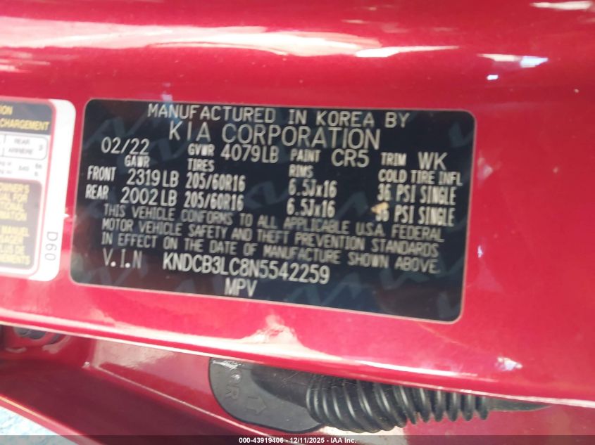 Колір ЧервонийЦиліндри 4Привід Передній привідVIN KNDCB3LC8N5542259Стан ЗаводитьсяУшкодження Мотор AutoRIA