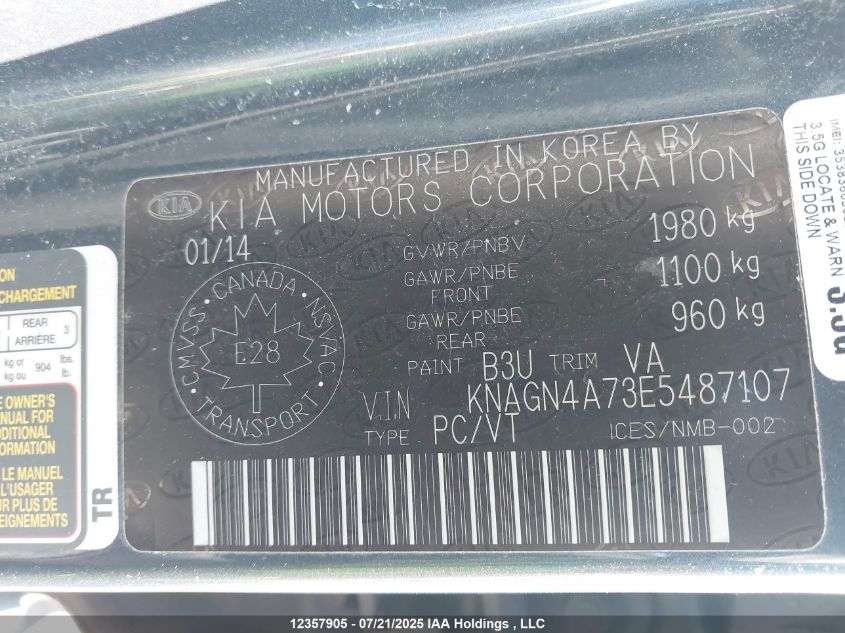 2014 KIA OPTIMA 2014 року Бензин, , Передній привід, vin - KNAGN4A73E5487107 з США