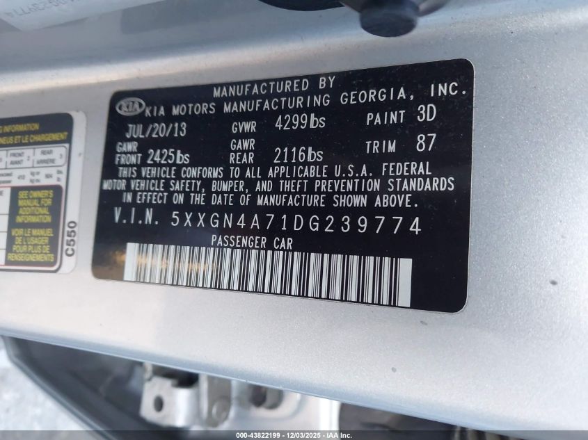 2013 KIA OPTIMA 2013 року Бензин, 2.4, Передній привід, vin - 5XXGN4A71DG239774 з США