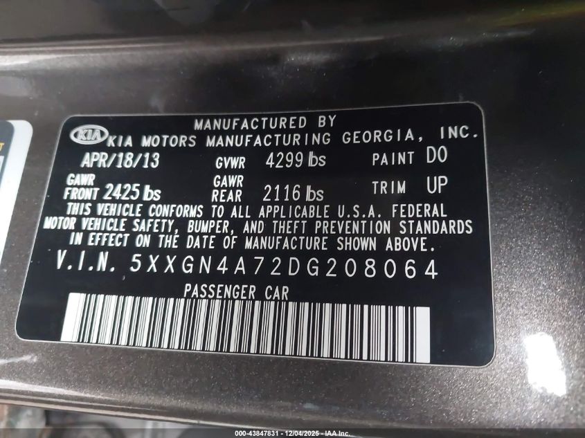 2013 KIA OPTIMA 2013 року Бензин, 2.4, Передній привід, vin - 5XXGN4A72DG208064 з США