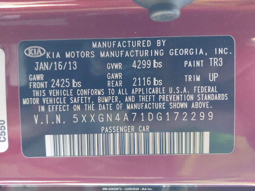 2013 KIA OPTIMA 2013 року Бензин, 2.4, Передній привід, vin - 5XXGN4A71DG172299 з США
