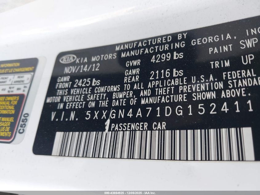 2013 KIA OPTIMA 2013 року Бензин, 2.4, Передній привід, vin - 5XXGN4A71DG152411 з США