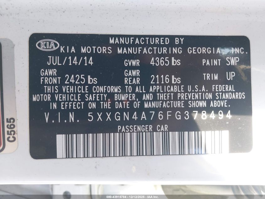 2015 KIA OPTIMA 2015 року Бензин, 2.4, Передній привід, vin - 5XXGN4A76FG378494 з США