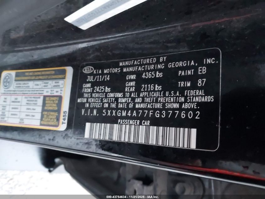 2015 KIA OPTIMA 2015 року Бензин, 2.4, Передній привід, vin - 5XXGM4A77FG377602 з США