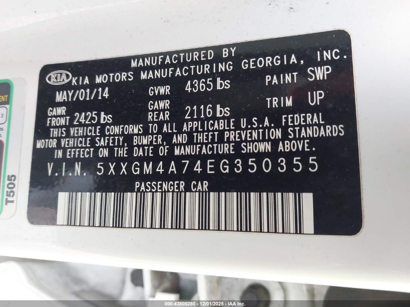 2014 KIA OPTIMA 2014 року Бензин, 2.4, Передній привід, vin - 5XXGM4A74EG350355 з США