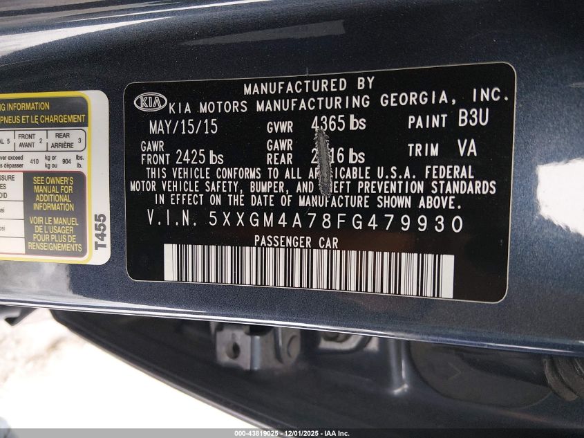 2015 KIA OPTIMA 2015 року Бензин, 2.4, Передній привід, vin - 5XXGM4A78FG479930 з США