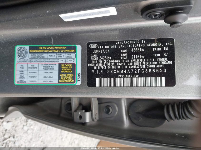 2015 KIA OPTIMA 2015 року Бензин, 2.4, Передній привід, vin - 5XXGM4A72FG366653 з США
