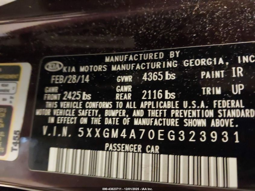 2014 KIA OPTIMA 2014 року Бензин, 2.4, Передній привід, vin - 5XXGM4A70EG323931 з США