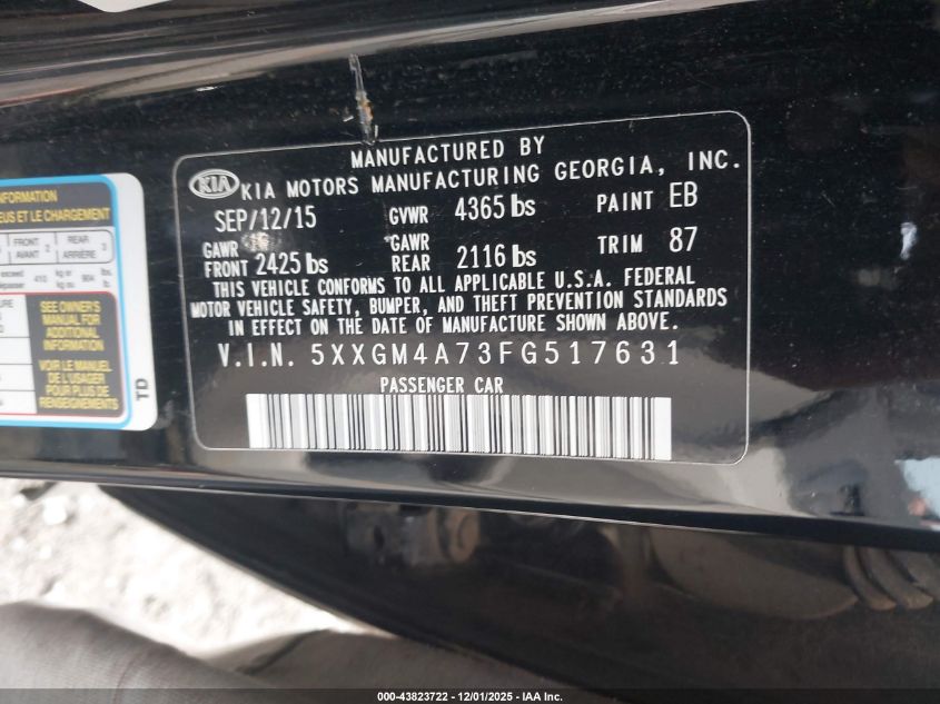 2015 KIA OPTIMA 2015 року Бензин, 2.4, Передній привід, vin - 5XXGM4A73FG517631 з США