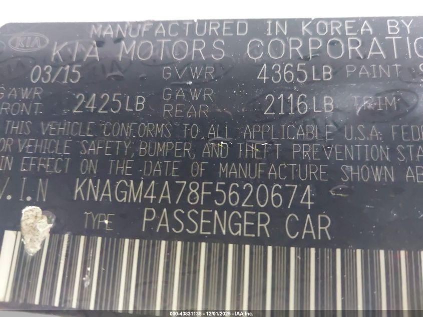 2015 KIA OPTIMA 2015 року Бензин, 2.4, Передній привід, vin - KNAGM4A78F5620674 з США