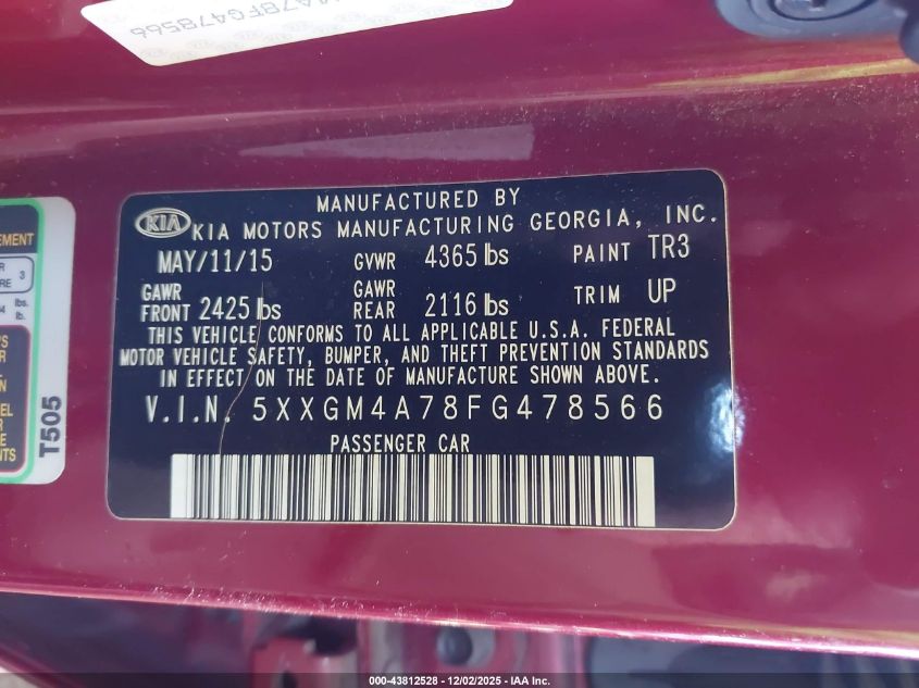2015 KIA OPTIMA 2015 року Бензин, 2.4, Передній привід, vin - 5XXGM4A78FG478566 з США