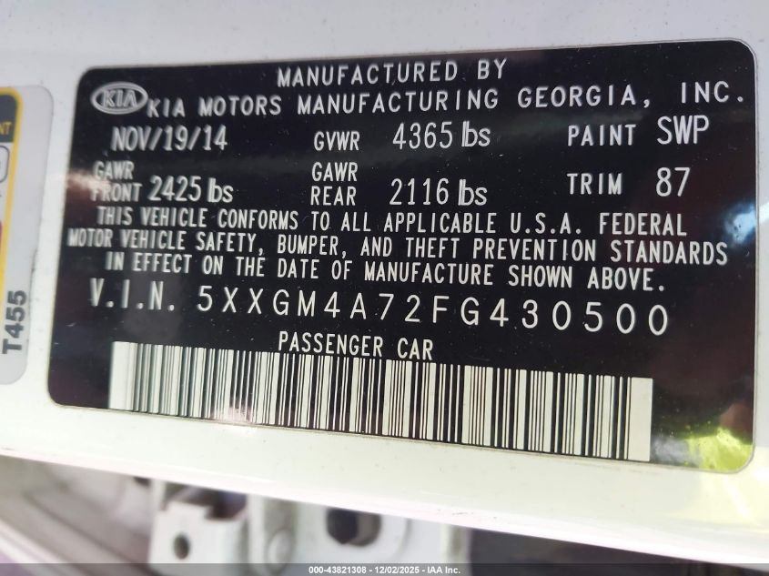 2015 KIA OPTIMA 2015 року Бензин, 2.4, Передній привід, vin - 5XXGM4A72FG430500 з США