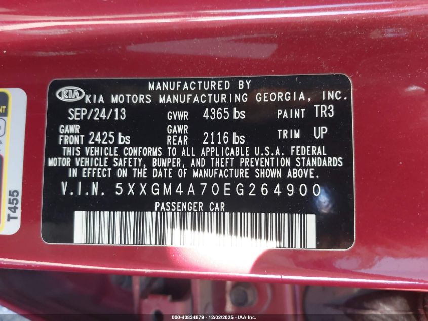 2014 KIA OPTIMA 2014 року Бензин, 2.4, Передній привід, vin - 5XXGM4A70EG264900 з США