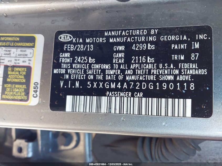 2013 KIA OPTIMA 2013 року Бензин, 2.4, Передній привід, vin - 5XXGM4A72DG190118 з США