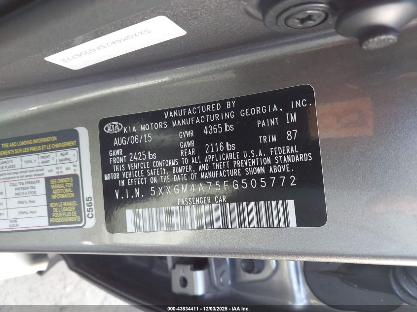 2015 KIA OPTIMA 2015 року Бензин, 2.4, Передній привід, vin - 5XXGM4A75FG505772 з США