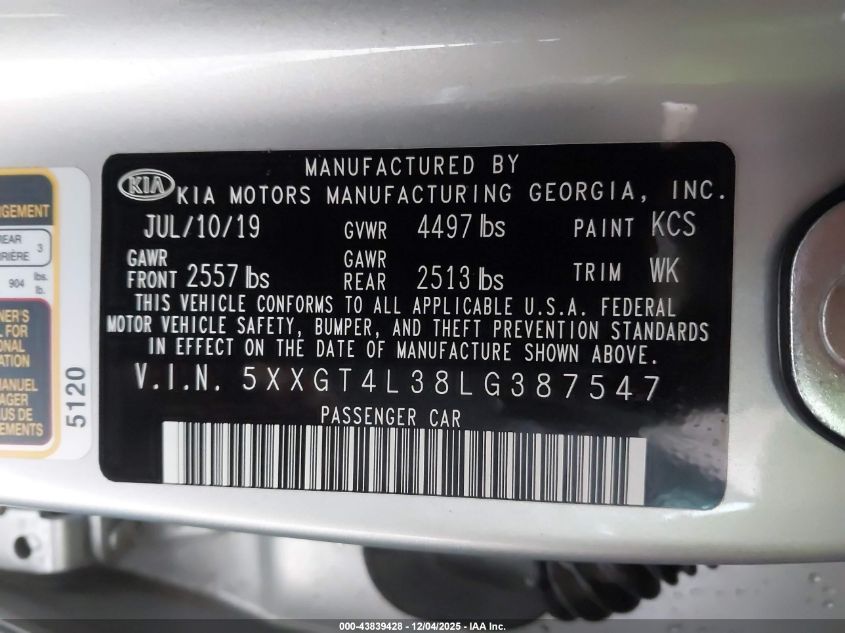 2020 KIA OPTIMA 2020 року Бензин, 2.4, Передній привід, vin - 5XXGT4L38LG387547 з США