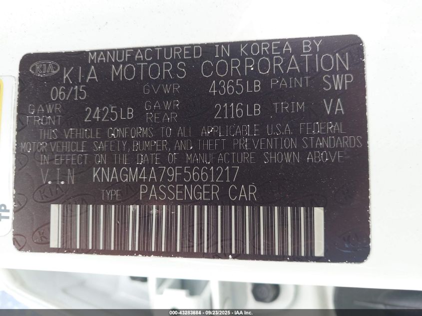2015 KIA OPTIMA 2015 року Бензин, 2.4, Передній привід, vin - KNAGM4A79F5661217 з США