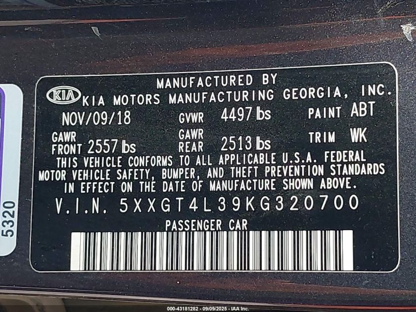 2019 KIA OPTIMA 2019 року Бензин, 2.4, Передній привід, vin - 5XXGT4L39KG320700 з США