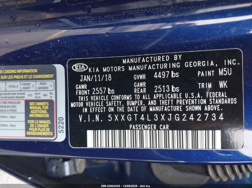 2018 KIA OPTIMA 2018 року Бензин, 2.4, Передній привід, vin - 5XXGT4L3XJG242734 з США