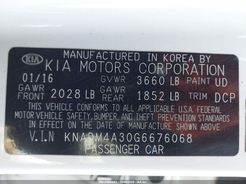 2016 KIA RIO 2016 року Бензин, 1.6, Передній привід, vin - KNADM4A30G6676068 з США