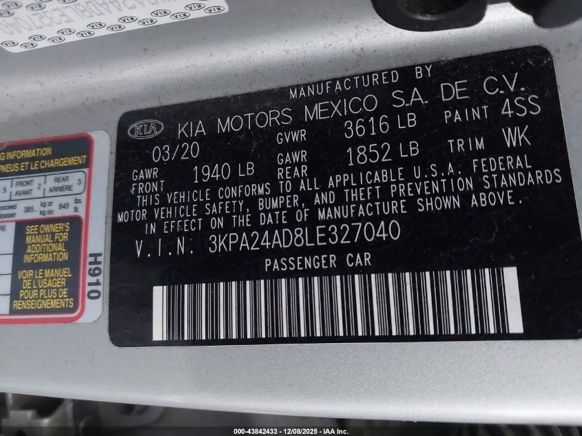 2020 KIA RIO 2020 року Бензин, 1.6, Передній привід, vin - 3KPA24AD8LE327040 з США