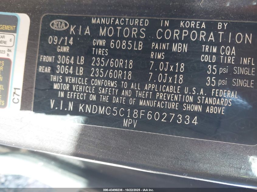 Колір ЧорнийЦиліндри 6Привід Передній привідVIN KNDMC5C18F6027334Стан СтаціонарноУшкодження ЗадняДата аукціону 2025-12-09 AutoRIA