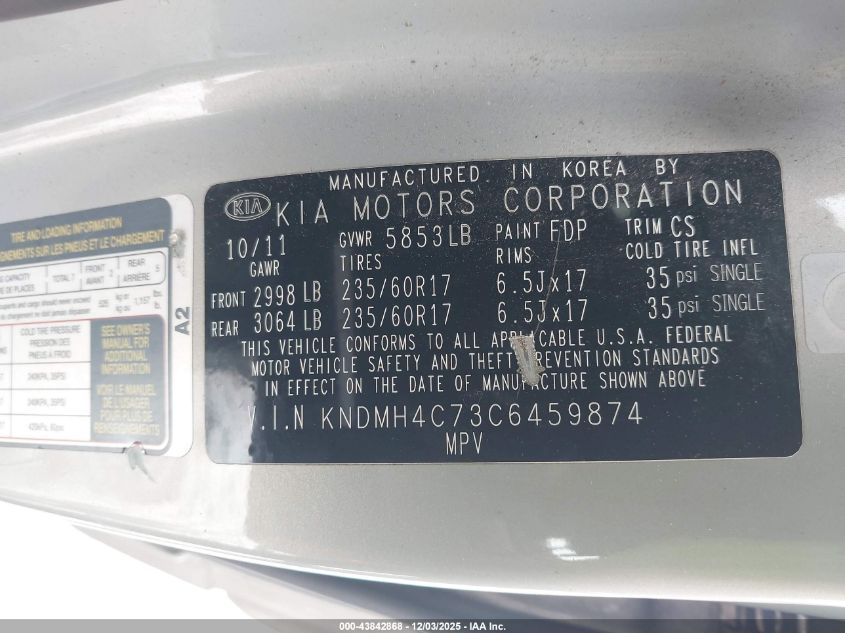 2012 KIA SEDONA 2012 року Бензин, 3.5, Передній привід, vin - KNDMH4C73C6459874 з США
