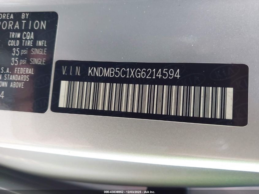 Колір СрібнийЦиліндри 6Привід Передній привідVIN KNDMB5C1XG6214594Стан Заводиться та їде (перевірено)Ушкодження Механічні пошкодження AutoRIA