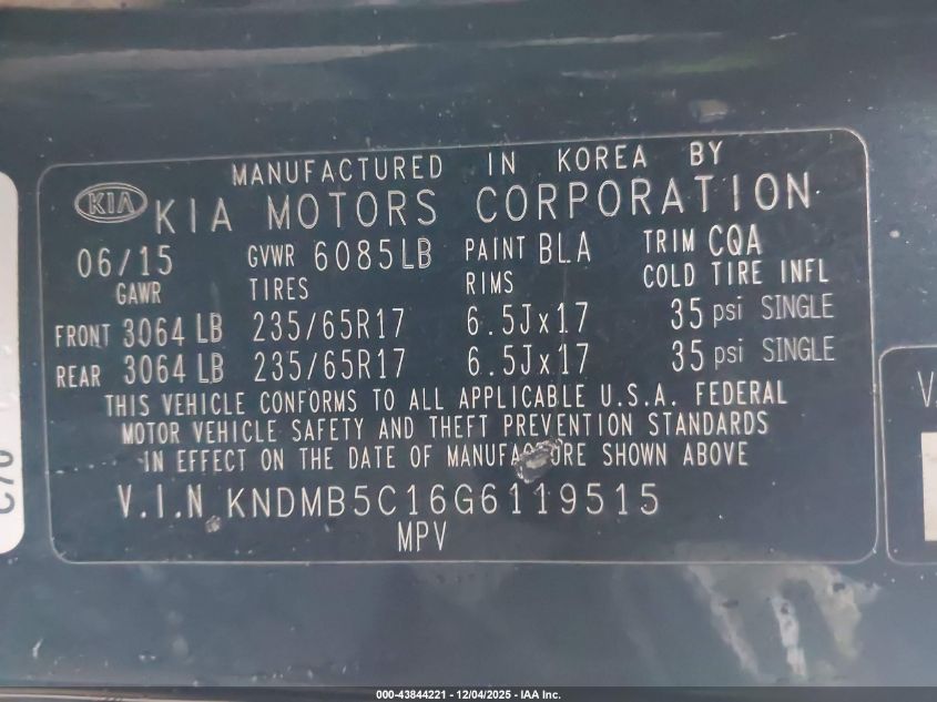Колір СинійЦиліндри 6Привід Передній привідVIN KNDMB5C16G6119515Стан Заводиться та їде (перевірено)Ушкодження Задня права AutoRIA