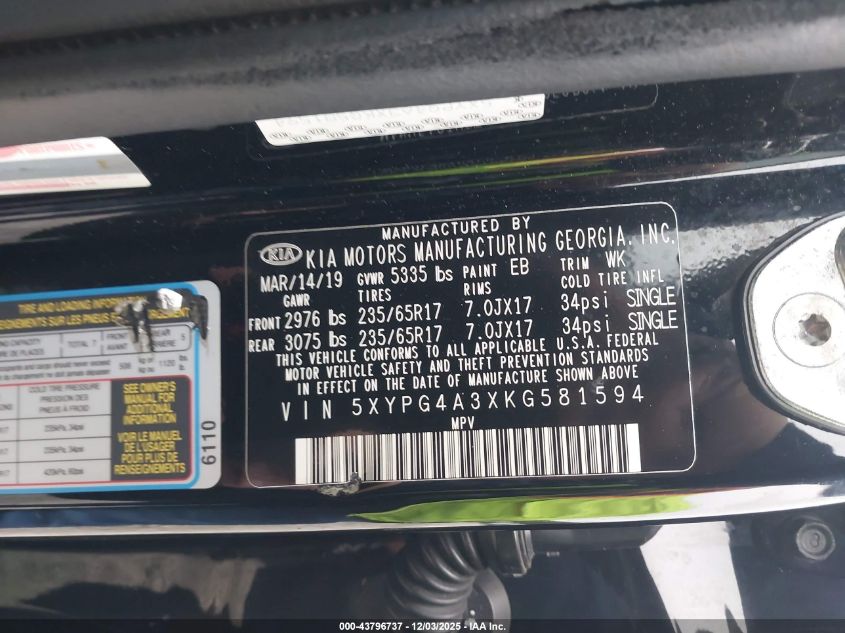 2019 KIA SORENTO 2019 року Бензин, 2.4, Передній привід, vin - 5XYPG4A3XKG581594 з США