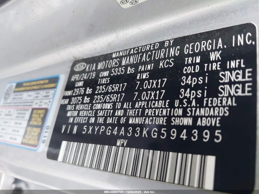 2019 KIA SORENTO 2019 року Бензин, 2.4, Передній привід, vin - 5XYPG4A33KG594395 з США