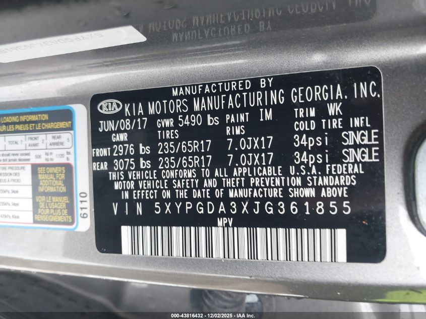 2018 KIA SORENTO 2018 року Бензин, 2.4, Повний привід, vin - 5XYPGDA3XJG361855 з США