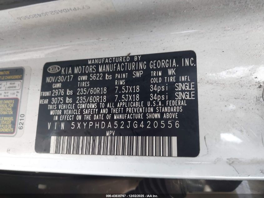 2018 KIA SORENTO 2018 року Бензин, 3.3, Повний привід, vin - 5XYPHDA52JG420556 з США