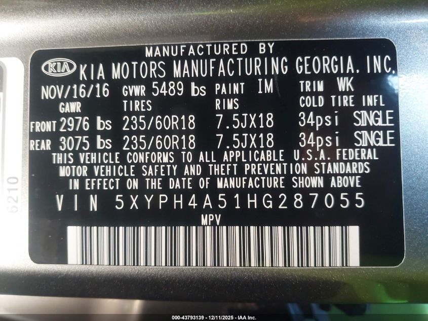 2017 KIA SORENTO 2017 року Бензин, 3.3, Передній привід, vin - 5XYPH4A51HG287055 з США