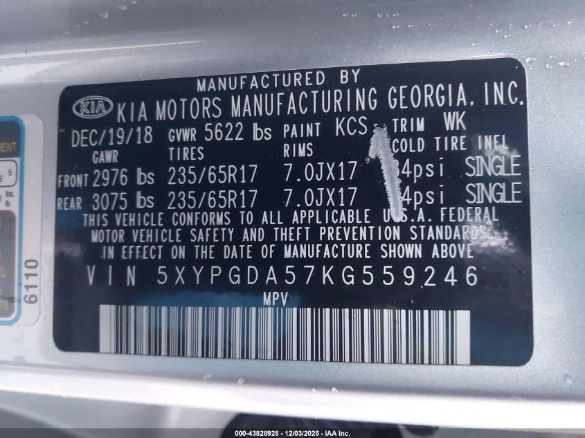 Колір СрібнийЦиліндри 6Привід Повний привідVIN 5XYPGDA57KG559246Стан Заводиться та їде (перевірено)Ушкодження Передня або задня AutoRIA