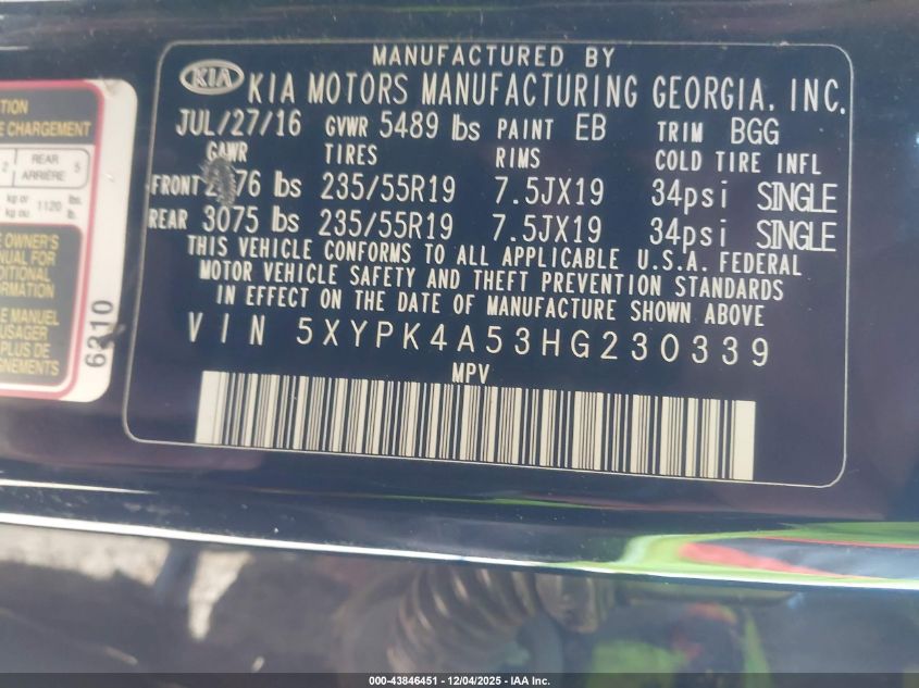 2017 KIA SORENTO 2017 року Бензин, 3.3, Передній привід, vin - 5XYPK4A53HG230339 з США