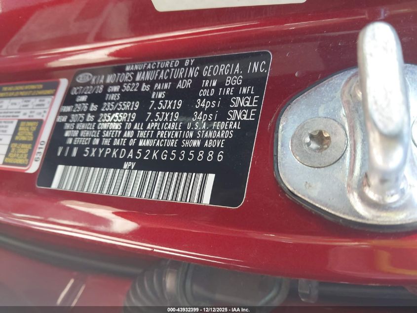 2019 KIA SORENTO 2019 року Бензин, 3.3, Повний привід, vin - 5XYPKDA52KG535886 з США