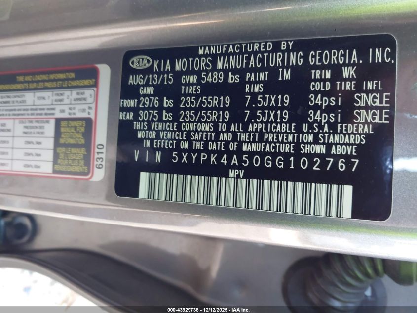 2016 KIA SORENTO SX
