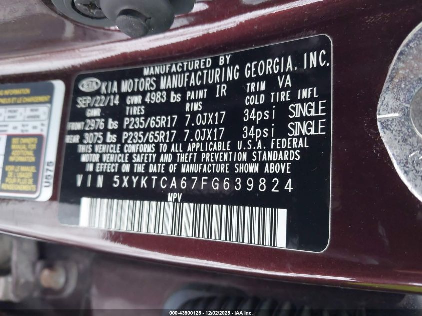2015 KIA SORENTO 2015 року Бензин, 2.4, Повний привід, vin - 5XYKTCA67FG639824 з США