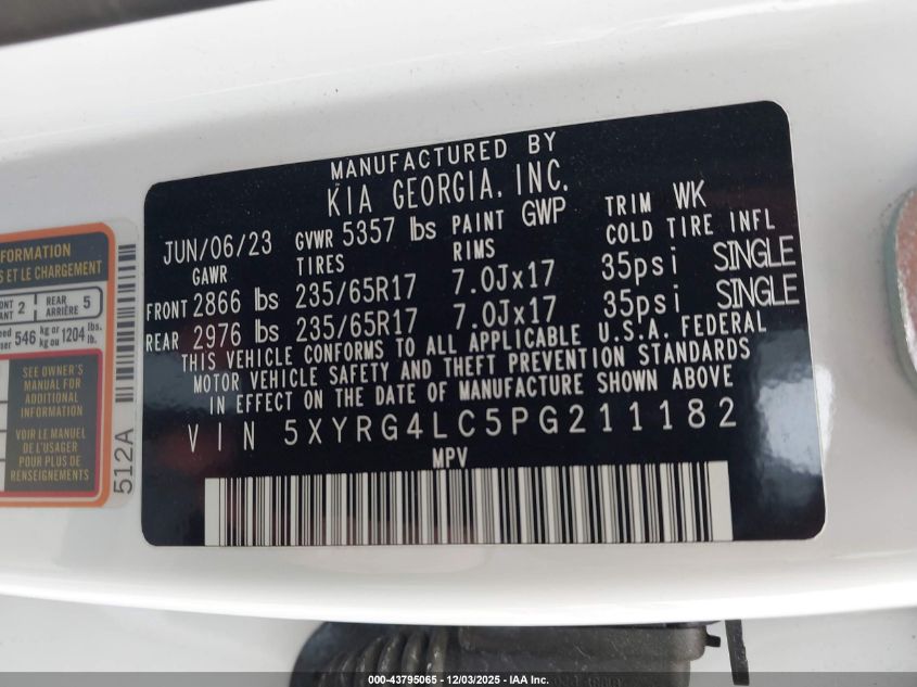 2023 KIA SORENTO 2023 року Бензин, 2.5, Передній привід, vin - 5XYRG4LC5PG211182 з США