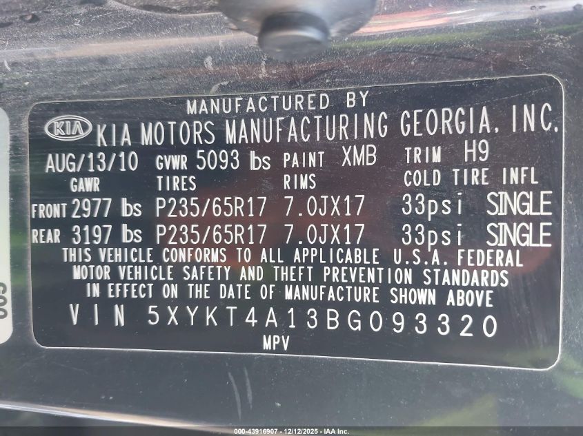 2011 KIA SORENTO 2011 року Бензин, 2.4, Передній привід, vin - 5XYKT4A13BG093320 з США