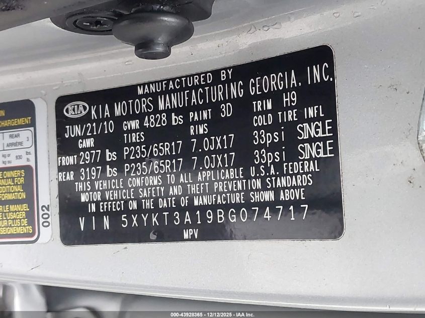 2011 KIA SORENTO 2011 року Бензин, 2.4, Передній привід, vin - 5XYKT3A19BG074717 з США