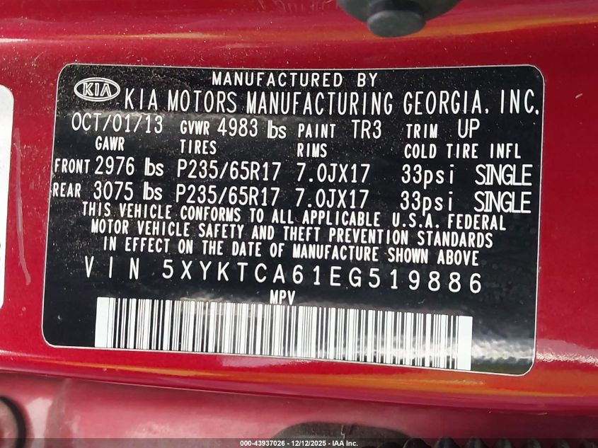 2014 KIA SORENTO 2014 року Бензин, 2.4, Повний привід, vin - 5XYKTCA61EG519886 з США