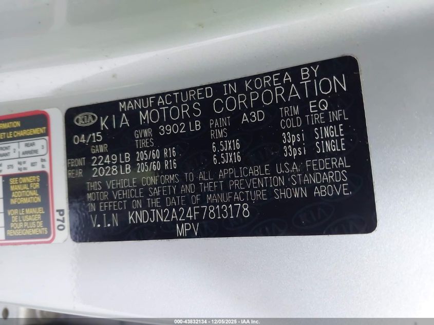 2015 KIA SOUL 2015 року Бензин, 1.6, Передній привід, vin - KNDJN2A24F7813178 з США