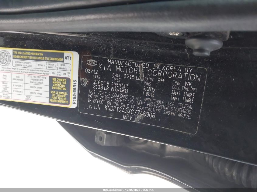 2012 KIA SOUL 2012 року Бензин, 1.6, Передній привід, vin - KNDJT2A5XC7746906 з США