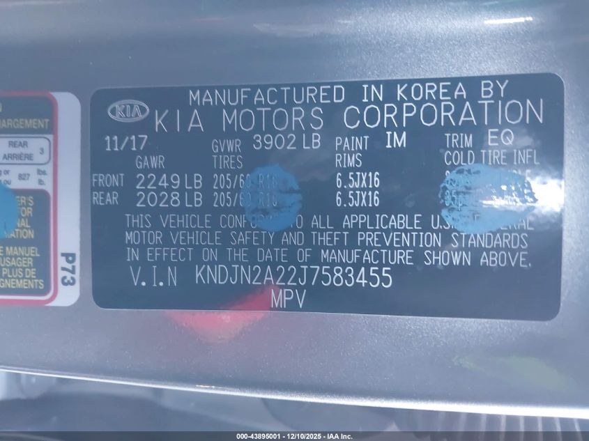 2018 KIA SOUL 2018 року Бензин, 1.6, Передній привід, vin - KNDJN2A22J7583455 з США