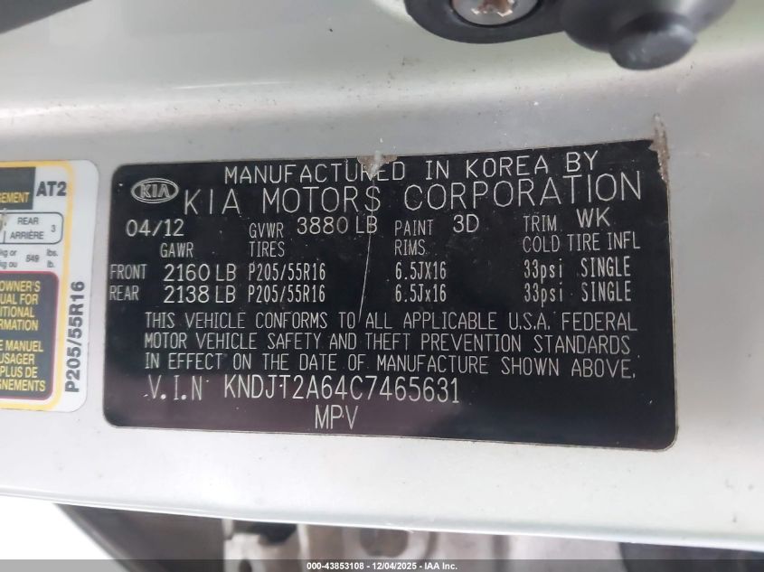 2012 KIA SOUL 2012 року Бензин, 2.0, Передній привід, vin - KNDJT2A64C7465631 з США